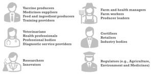 NAPs are drivers for change and many actors involved in the aquaculture sector may be impacted by their contents (Figure 2). The ramifications of a NAP on individuals will depend on their roles and responsibilities: It is possible that a NAP has affected workplace activities already without those people affected necessarily being aware of the link. As NAP implementation is led primarily by government through various departments and agencies, one may become aware of impending changes through communications issued by trade or professional bodies, and governmental agencies.