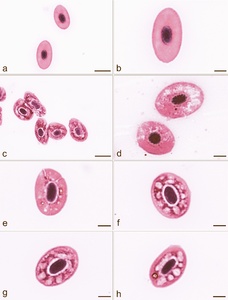 Blood smears in affected fish showed the presence of erythrocytes with cytoplasmic lesions, whose occurrence in six fish ranged between 60 and 70 % and in four fish between 70 and 90 % (Figs 3a-h). No such lesions were seen in fish with no clinical signs of disease and with a negative bacteriological finding. Eosinophilic cytoplasmic inclusion bodies, characteristic for VEN diagnosis, were not found in the affected and unaffected fish we examined, and, therefore, it was unnecessary to use transmission electron microscopy (TEM) (Amos 1985) for the definitive diagnosis of VEN. Also, there were no single or multiple basophilic bluish cytoplasmic inclusions, which would confirm the erythrocytic inclusion body syndrome (EIBS).